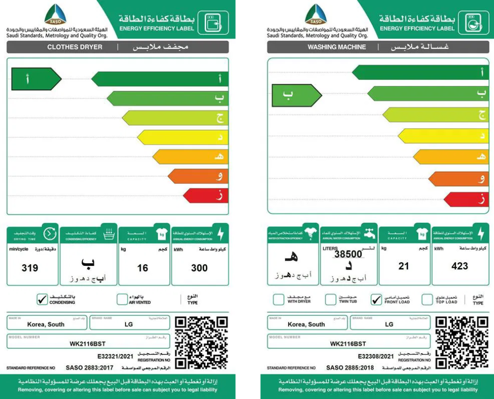 إل جي - غسالة تحميل أمامي، سعة غسيل 21 كجم، تجفيف 16 كجم