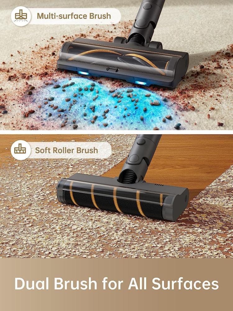 • رأس فرشاة مزدوج متطور لتنظيف متعدد الاستخدامات: تلتقط رأس الفرشاة على شكل حرف V والفرشاة الدوارة الناعمة الأوساخ والحطام من جميع الزوايا، مما يجعلها مثالية لتنظيف السجاد والأرضيات الخشبية وأكثر من ذلك