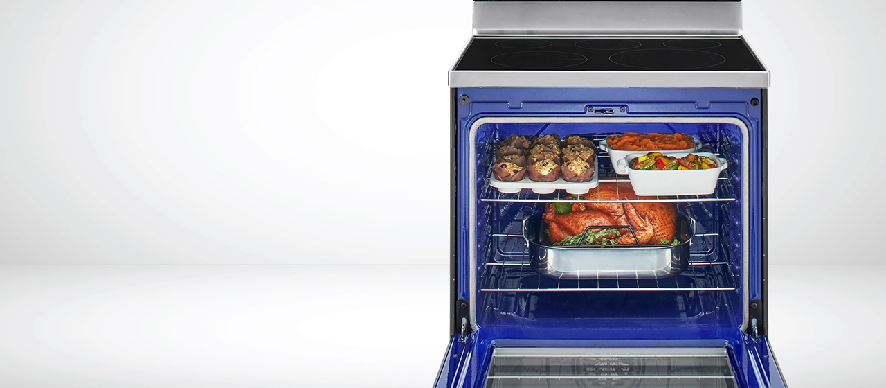 اطبخ لفرد واحد، أو اطبخ للجميع فهذا الفرن بحجم 6.3 أقدام مكعبة يتمتع بأكبر سعة فرن في فئته.*