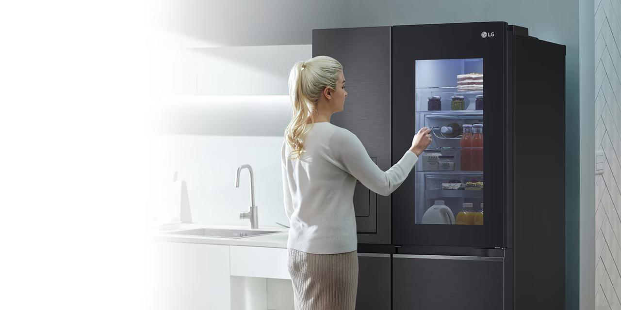 انقر مرتين وشاهد ٪23 أكثر مما بالداخل مع أحدث جيل من ثلاجات ™InstaView™ ThinQ.