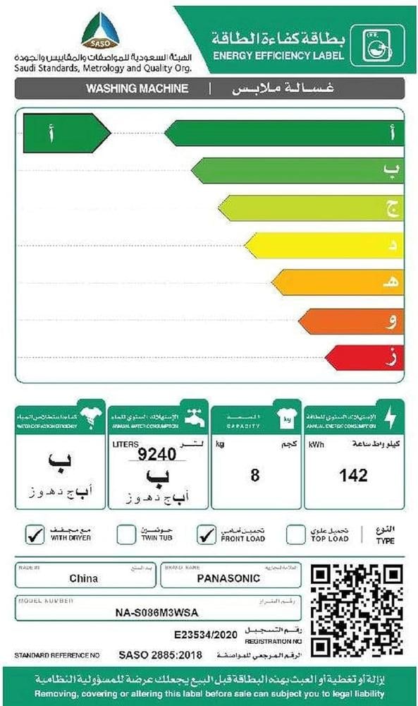 باناسونيك - غسالة أمامية, 8 كيلو