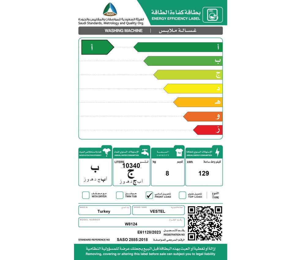 • سعة الغسيل: 8 كيلو.