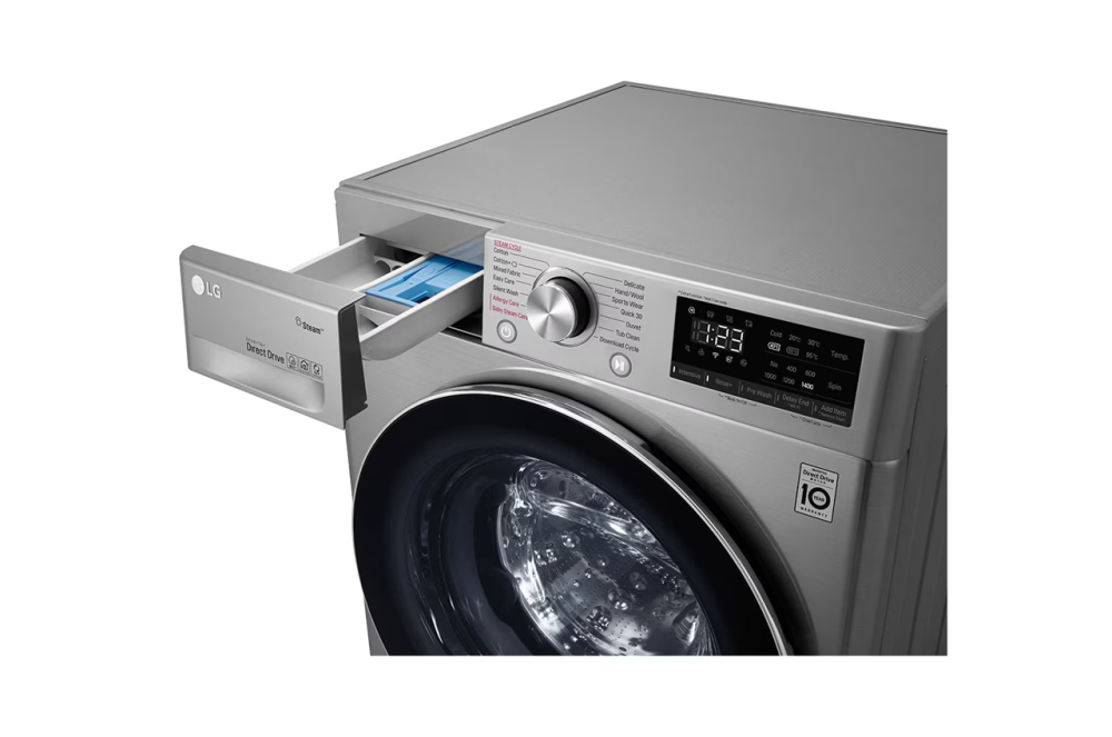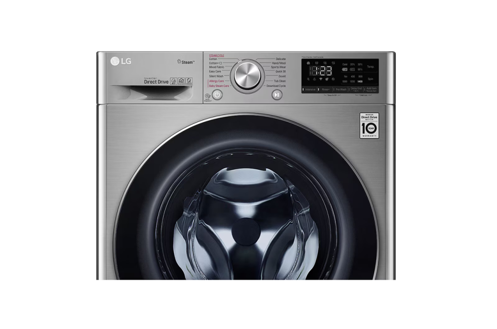 *تم الاختبار بواسطة Intertek في مارس 2019. دورة قطن بوزن 2 كجم من الملابس الداخلية مقارنة بدورة القطن التقليدية لدى إل جي (F4V9RWP2W مقابل FC1450S2W). قد تختلف النتائج بناءً على الملابس والبيئة.